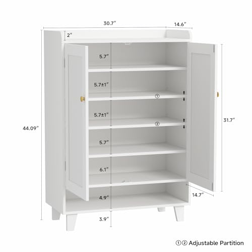 【Spacious & Organized Storage】: This wooden shoe cabinet features 6 tiers shelfves and 2 doors, offering ample space to neatly store 18-24 pairs of shoes. Keep your entryway tidy and free from clutter with this elegant storage solution.