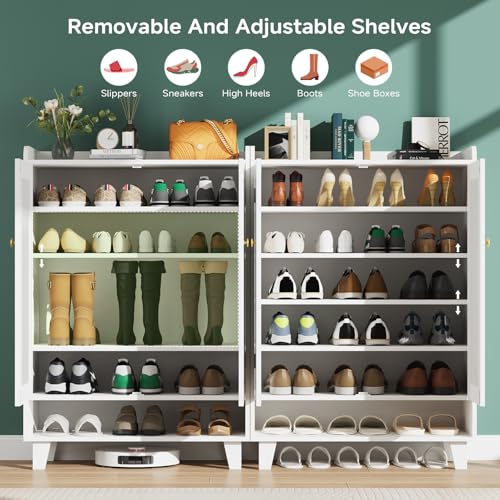 【Flat-shelf Design & Adjustable Shelves】: Unlike slanted shoe cabinets, this flat-shelf shoe cabinet makes storing and retrieving shoes much easier and helps maintain your shoes’ original shape. It includes 2 adjustable shelves, allowing you to customize the space for different footwear, from high boots to sneakers.