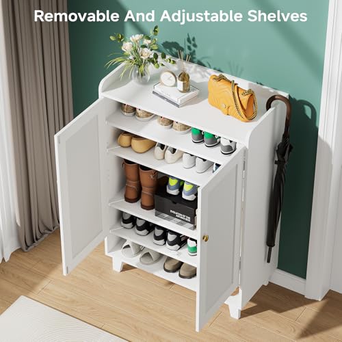 Flat-Shelf Shoe Cabinet with Doors,6-Tier Shoes Storage Cabinet with Adjustable Shelves,Wooden Shoe Rack Shoes Storage Organizer Cabinets for Entryway, Hallway, Living Room