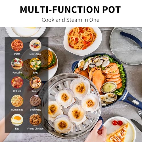 3-Quart Electric Hot Pot & wok Nonstick with Steamer | Electric Skillet 1200W for Dorm, Home, Gifts (Includes Silicone Spatula) Multi-Cooker