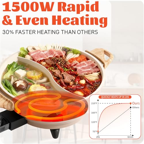 Electric Hot Pot with Divider | PFAS-Free Ceramic Nonstick Pot | EvenHeat Cast Aluminum Body | 1500W Fast Heating | Dual-Flavor Shabu Shabu Pots for Family Use | 1-Yr Warranty