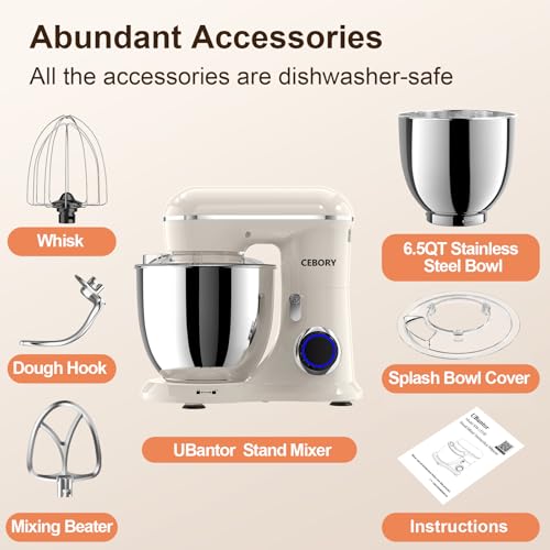 🍞Versatile & Efficient : CEBORY kitchen mixer boasts a multitude of functions, mixing, kneading and whisking. Featuring 10 and Pulse speed settings ranging from gentle stirring to high-speed blending – making it a powerful ally for all your culinary endeavors, such as, cakes, bread, cookies, pastry, muffins, and waffles