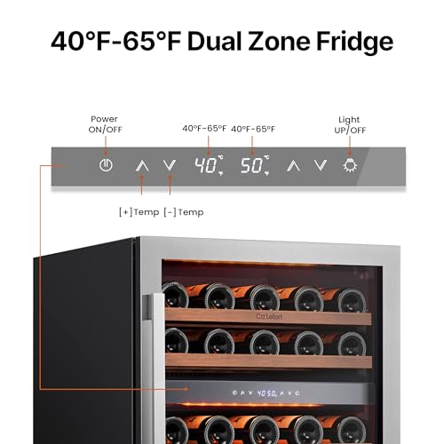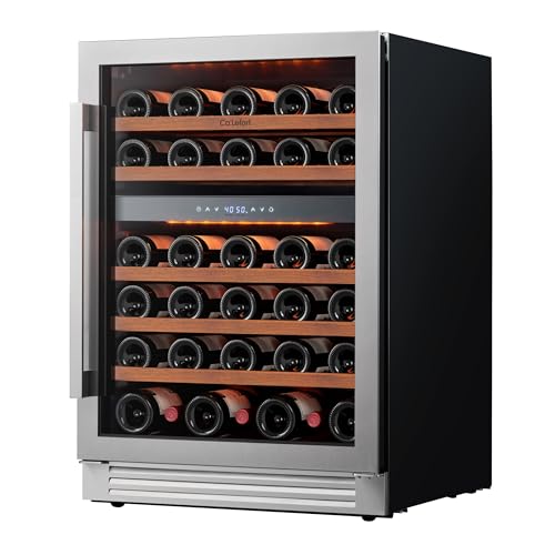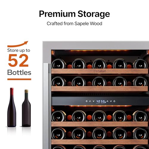 Ca’Lefort 24 Inch Wine Fridge Cooler – 52 Bottles Dual Zone Cooler with Glass Door, 3 LED Built-in Compressor Fridge with Adjustable Shelves for Home Office Bar (5.65 cu.ft)