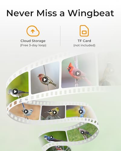 ใ€๐—–๐—น๐—ผ๐˜‚๐—ฑ ๐—ฆ๐˜๐—ผ๐—ฟ๐—ฎ๐—ด๐—ฒ & ๐—˜๐—ฎ๐˜€๐˜† ๐—ฆ๐—ต๐—ฎ๐—ฟ๐—ถ๐—ป๐—ดใ€‘Save and revisit your favorite bird moments with secure cloud storage or a Micro SD card (๐˜‚๐—ฝ ๐˜๐—ผ ๐Ÿญ๐Ÿฎ๐Ÿด๐—š๐—•, ๐—ป๐—ผ๐˜ ๐—ถ๐—ป๐—ฐ๐—น๐˜‚๐—ฑ๐—ฒ๐—ฑ). Share videos with family, friends, or online communities, and let everyone enjoy the joy of natureโ€”no matter where they are.