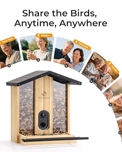 TT Nature Bird Feeder with Camera โ€“ 3L Smart Bird Feeder with AI Recognition, Live Streaming, Cloud Storage, Real-Time Alerts, Birdwatching Gift for Nature Lovers (Bamboo)