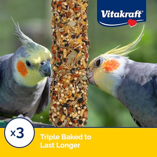 Treat your cockatiel to a crunchy, long-lasting baked treat stick made with millet, seeds and a touch of honey. These triple-baked layered treat sticks are a great way to treat your favorite pet with a natural wood chew center to promote chewing and beak health long after the treat part is gone. Vitakraft Crunch Sticks are more than just a treat: they help promote important chewing needed for wearing down a bird’s beak to keep it healthy and strong. Treats can also help keep birds mentally and physically stimulated to prevent boredom and stress that may lead to feather plucking.
