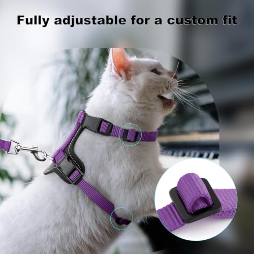 Plutus Pet Adjustable Cat Harness and Leash Set, Quick Release, Escape Proof Nylon Vest with Leather Trim for Kitten, Small Medium Large Cats, Purple