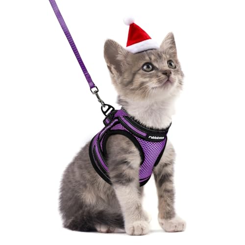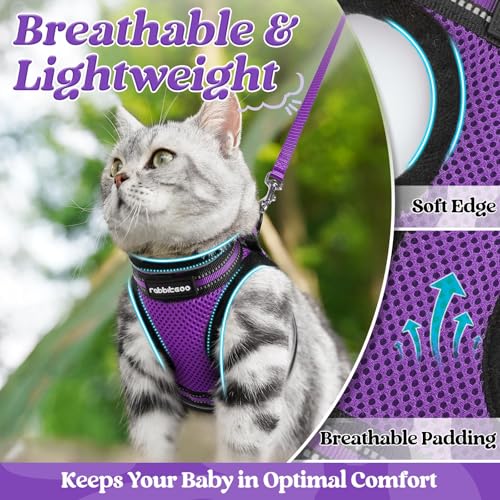 rabbitgoo Cat Harness and Leash Set for Walking Escape Proof, Adjustable Soft Kittens Vest with Reflective Strip for Cats, Comfortable Outdoor Vest, Purple, S