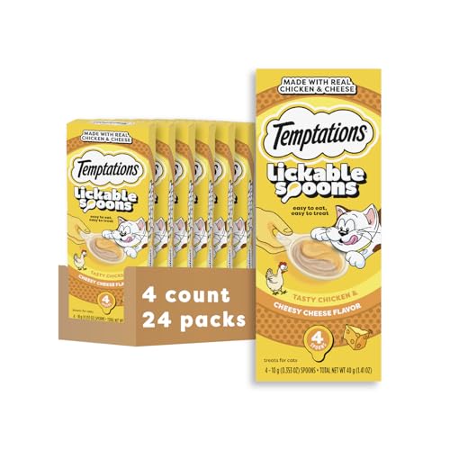 Temptations Lickable Spoons Adult Wet Cat Treat, Tasty Chicken and Cheesy Cheese Flavor, 4 Spoons, Pack of 24 (96 Total)
