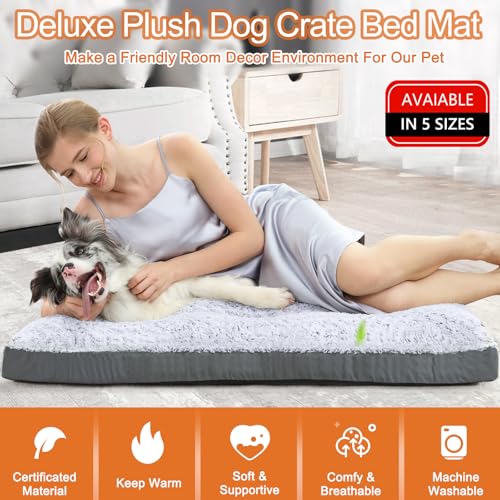 POCBLUE Deluxe Washable Dog Bed for Large Dogs Dog Crate Mat 35 Inch Comfy Fluffy Kennel Pad Anti-Slip for Dogs Up to 60 lbs, 35″ x 23″, Grey