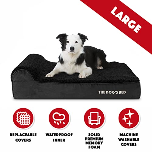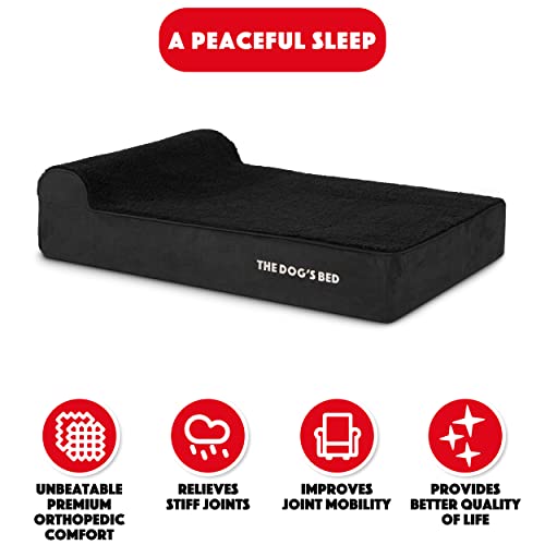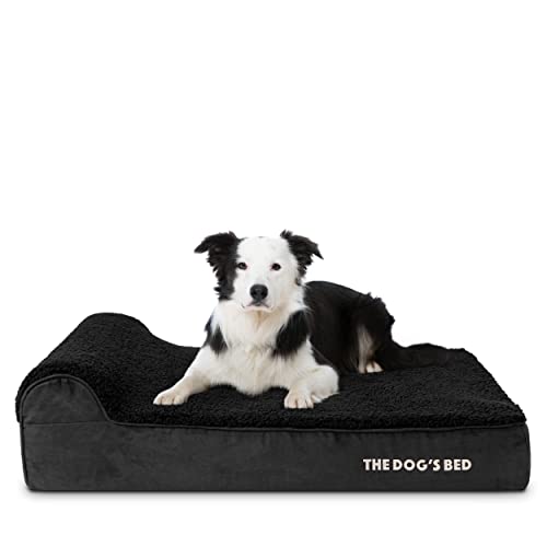 The Dog’s Bed Orthopedic Headrest Dog Bed Large Black Plush, Memory Foam, Pain Relief for Arthritis, Hip & Elbow Dysplasia, Post Surgery, Lameness, Waterproof Washable Cover