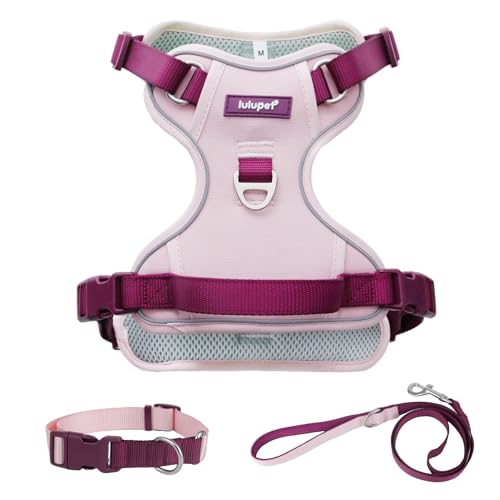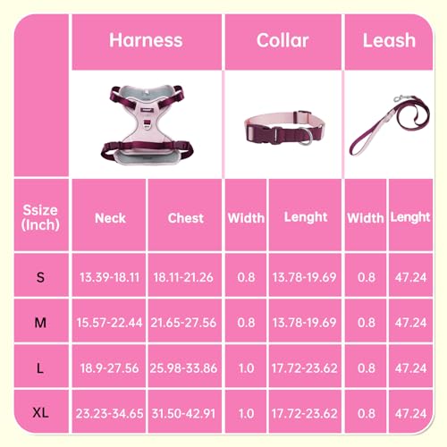 No Pull Dog Harness Leash and Collar Set, Soft Adjustable Dogs Vest Reflective and Comfortable Handle Pink Small