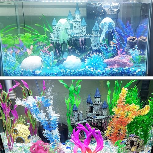 Application:Aquarium castle decorations is doubled sided and flat bottom designed and can be placed anywhere ornament in your fish tank.Large castle aquarium decor is perfect for all in medium&large size freshwater&saltwater aquariums