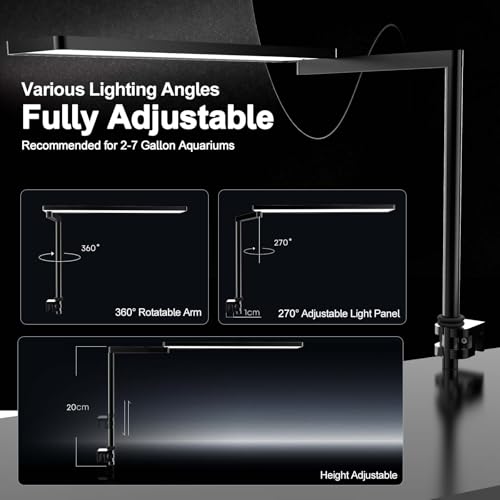 Flexible Adjustment:The nano aquarium light fits rimless tanks with glass under 8mm thick,features an adjustable height, the panel rotates 120° and the stand rotates 360°,and covers tanks 20–50cm in length, ensuring it fits various tank shapes and sizes. Whether you have a small nano aquarium or a creative Wabi-Kusa setup, the SOLO light provides the perfect light angle and flexible installation options.