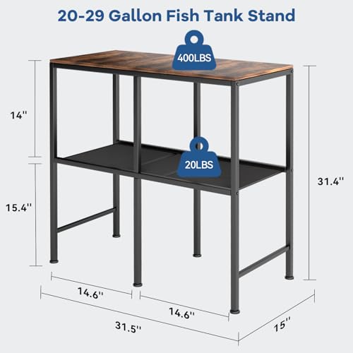 Specification: 20-29 Gallon Fish Tank Stand, Aquarium Stand with 2-Tier Storage Shelves, 31.5”L x 15.7“W, 6-Leg Metal Frame for Reptile Breeder Turtle Terrarium Stand, 400Lbs+, Suitable for Home Office