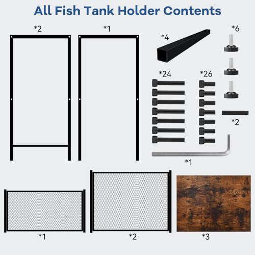 【29 Gallon Aquarium Stand: Easy Maintenance & Setup】 The 29 gallon aquarium stand features a wire mesh middle shelf for dust-free cleaning (simply wipe or rinse) and a durable metal iron frame. Assembly is hassle-free, thanks to a detailed manual and installation videos.