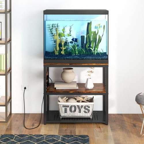 Specification: Livofloral 20-29 Gallon Fish Tank Stand With Power Outlets, 3-Tier Metal Aquarium Stands, Breeder Reptile Tank Stand with Shelf for Home Office, 660LBS Capacity, 29.5 x 15.8 x 30.1 inches, Brown