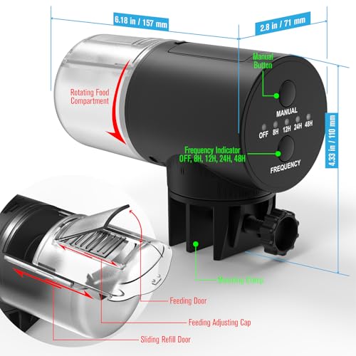 Specification: Automatic Fish Feeder for Aquarium, Vacation, 7, 14 Day Auto Food Dispenser with Timer, 200ml Large Capacity, Battery Powered, Ideal for Turtle/Fish Tank Aquarium Accessories, Batteries Included
