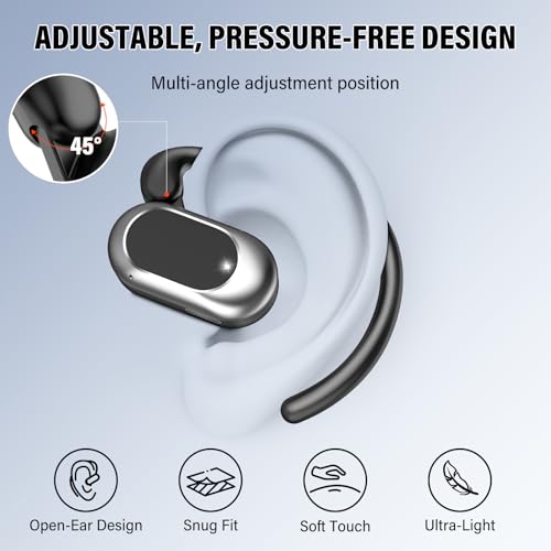 Ergonomic Open-Ear Comfort: This wireless earbuds feature a unique shape that doesn’t plug into the ear canal, ensuring prolonged comfort during wear. Soft, adjustable ear hooks ensure a snug fit for all activities and everyday life without pressing on glasses. The open ear bluetooth headphones will also allow you can easily perceive the changes in the surrounding environment while enjoying the music, ensuring the safety and comfort of use. Ideal for outdoor activities and active lifestyles.
