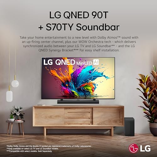 LG S70TY 3.1.1-Channel QNED TV Matching Soundbar, Dolby Atmos, Wow Orchestra, Rear Speaker Ready, Wireless Subwoofer (2024 Model)