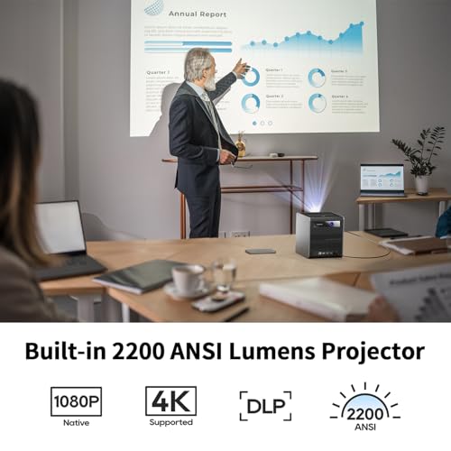 All-in-One Video Conferencing System: StarryHub integrates all the essential devices for a hybrid/local/video conference. It features a Short Throw Projector(2200 ANSI Lumens, 30-150’’ Display ) + a Conference Room Webcam(HD 1080P, 120° Wide Range, WDR, Auto Framing) + 6 Microphones(AI Driven Speakers’ Voice Enhancement) sound pick-up range up to 25 ft (8 meters) and built-in Conference Speakers