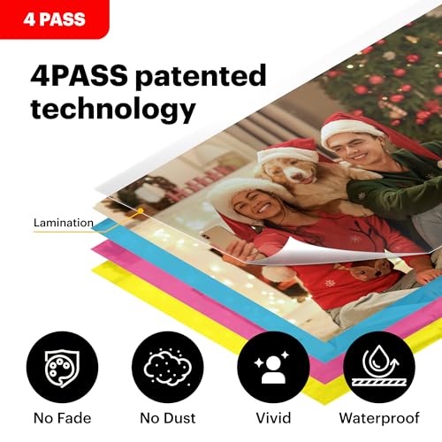 Superior photo quality; Kodak 4PASS technology to print flawless photos in layers of color with a laminating process, making them fingerprint proof, water resistant, and lasting for generations
