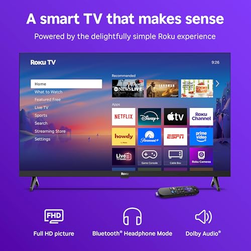 A smart TV that makes sense. Roku Select Series Full HD TVs are designed for a delightful entertainment experience. Enjoy your streaming favorites in bright Full HD and catch every word with auto speech clarity and night mode. Watch free live television right from the home screen, or use the voice remote to find entertainment across thousands of apps. It’s the perfect flat screen TV for bedrooms, living rooms, kitchens, or kids’ rooms. Smart TV doesn’t have to be complicated. That’s why we’ve designed a line of flat screen smart TVs powered by the delightfully simple Roku experience.