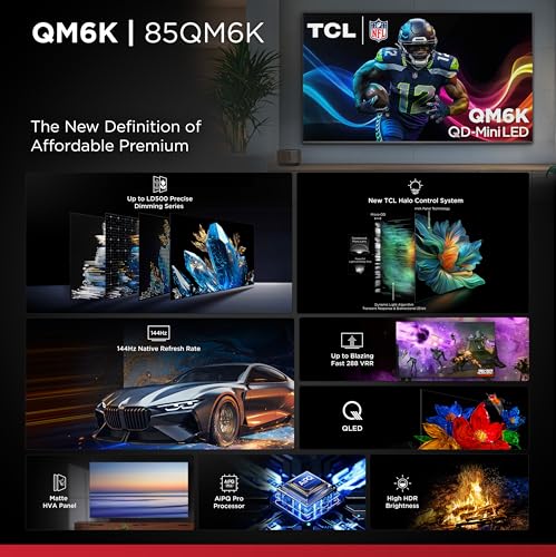 TCL QM6K QD-MINI LED TV SERIES – AFFORDABLE PREMIUM PERFORMANCE FOR SPORTS, GAMING & STREAMING. Experience superior contrast, rich color, and ultra-smooth motion with TCL’s QD-Mini LED technology. Designed to outperform traditional QLED and OLED TVs, the QM6K is the best TV for every moment—whether you’re streaming, gaming, or watching the big game.